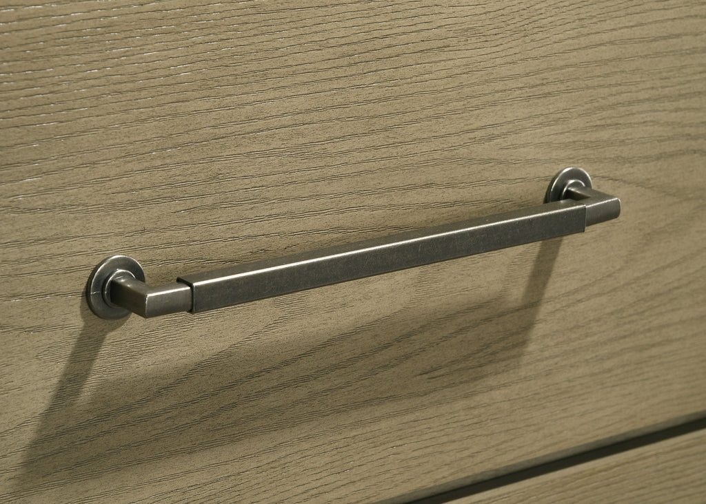 This six-drawer dresser with mirror brings casual sophistication to the bedroom with its clean lines and warm vineyard oak finish. Built from solid rubberwood and embossed oak grain veneer, it pairs classic construction with subtle rustic charm. Antique nickel metal knob and pull handles accent each drawer, while the framed mirror enhances light and balance in the space. Smooth metal ball bearing extension slides complete this effortlessly functional design.