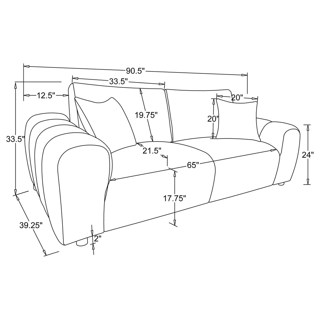 A bold statement in plush comfort, this sculptural sofa blends contemporary curves with relaxed charm. Chunky arms and a low profile enhance its casual elegance, while deep foam cushions and accent pillows offer cozy support. Wrapped in soft chenille upholstery over a sturdy blend of rubberwood and engineered wood, this lounge-ready piece is designed for everyday comfort. Ideal for living rooms, lounges, or open-concept interiors.