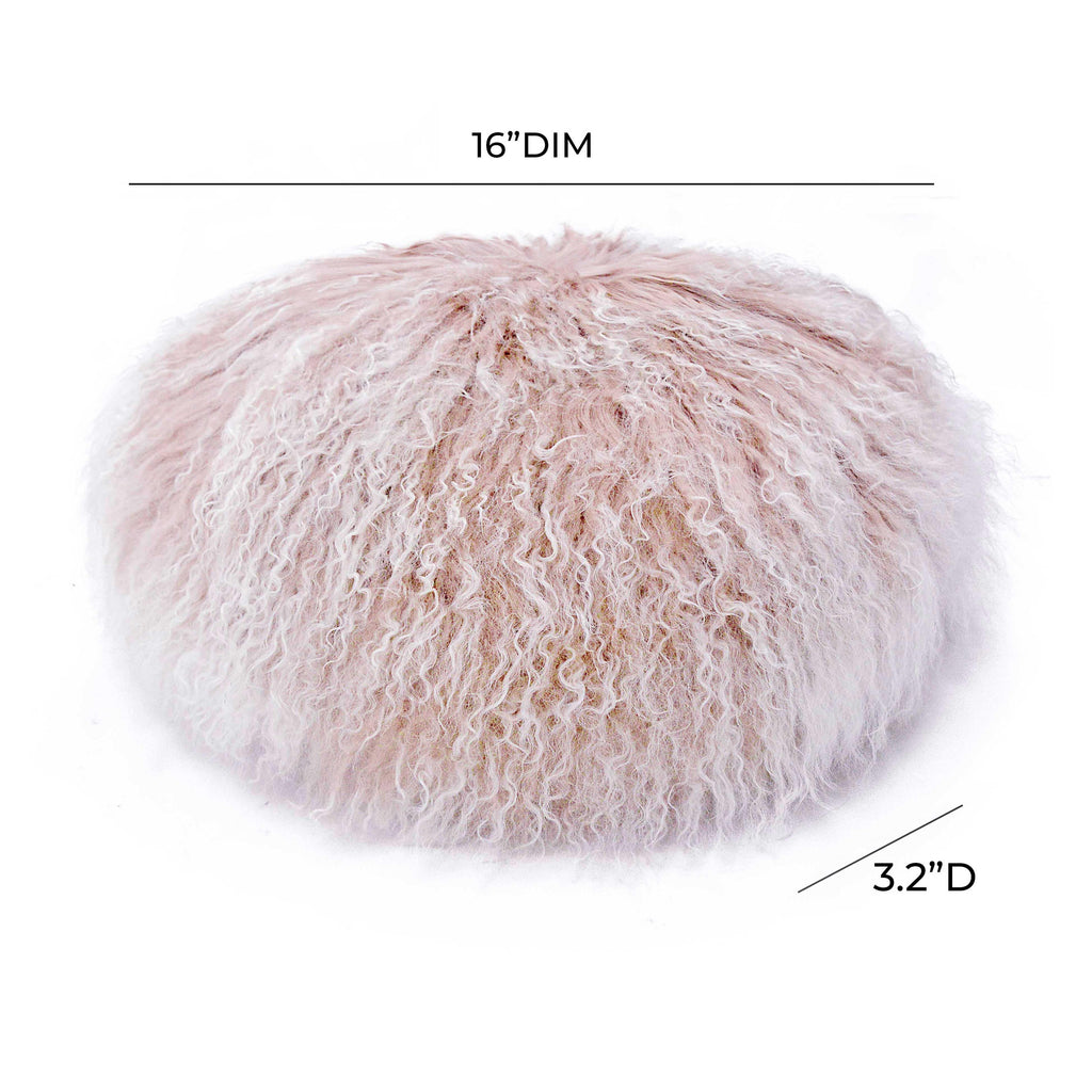 Round pillows are all the rage! Snag the Ruby Tibetan Lamb Fur Round Pillow as a fun addition to literally any spot in your home. With its humanely sourced genuine lamb fur and blush ombre color, Ruby is the IT pillow you need.