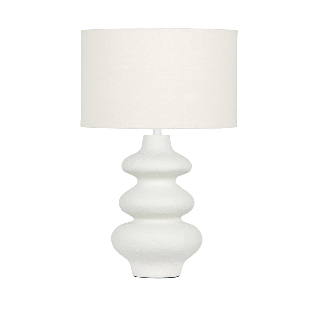 Illuminate your space with the Riviera Textured Table Lamp, featuring a biomorphic surface texture crafted from handformed fiberglass. The lamp's 'wavy' silhouette and perfect proportions create a striking visual appeal, making it a versatile addition that seamlessly fits into any corner of your home. Elevate your decor with this unique and stylish lamp that adds both texture and personality to your living space.