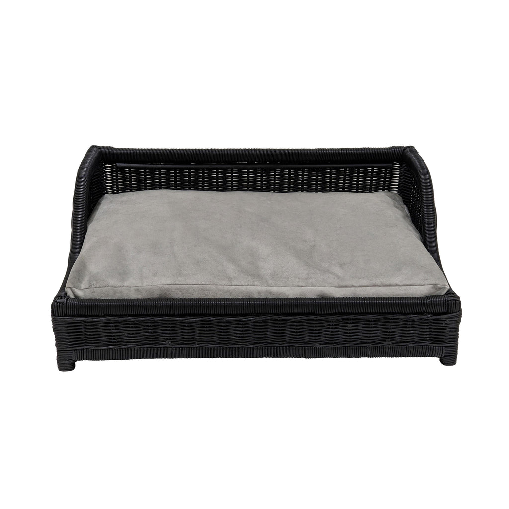 Introducing the Poppy Black Rattan Small Pet Bed, perfectly sized for smaller dogs in pursuit of both comfort and style. Crafted from natural rattan in bold black, this pet bed offers durable elegance, complemented by a plush, comfy cushion that assures endless cozy rests for your furry friend. Infused with a summery Palm Springs style, this bed not only provides a luxurious sleeping spot but also elevates the aesthetic of any space, catering to the fashion-forward pet and owner alike.